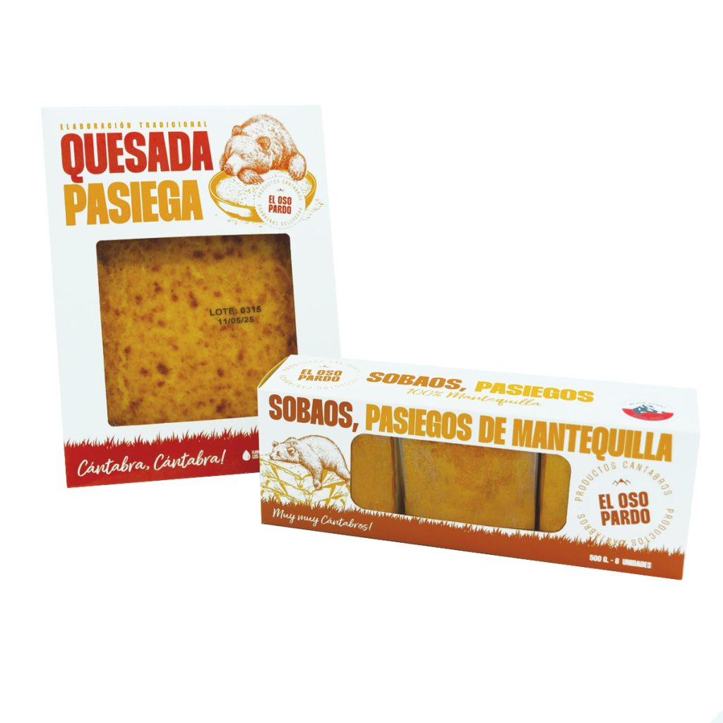 Disfruta de lo mejor de la repostería cántabra con estos deliciosos packs que reúnen dos de los postres más emblemáticos de la región: los Sobaos Pasiegos IGP y la Quesada Pasiega Tradicional. Dulces elaborados siguiendo las recetas más tradicionales, para ofrecerte un sabor auténtico que te transportará directamente al corazón de los Valles Pasiegos. ¡Échales un vistazo!